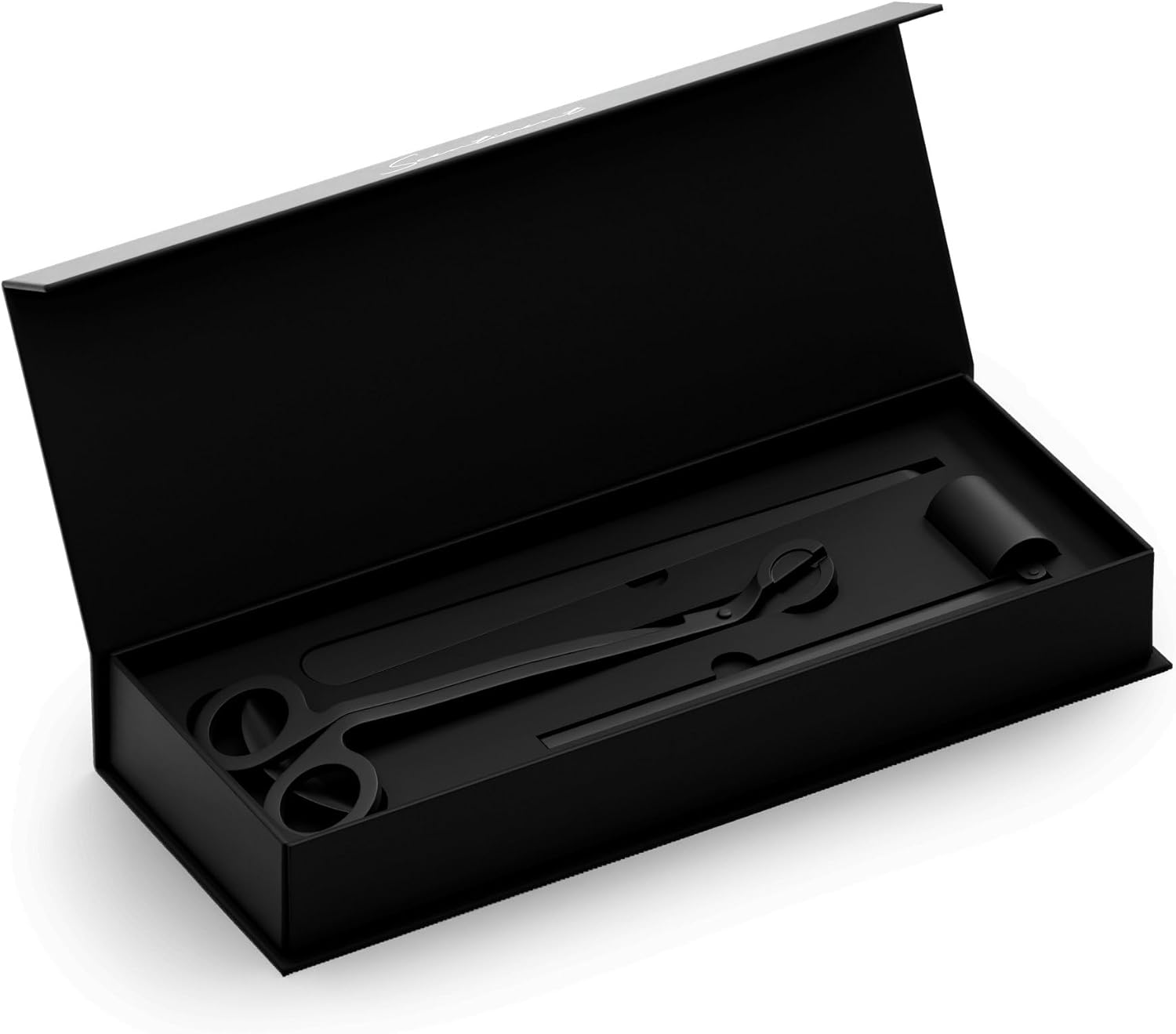 Elevate your candle care routine with this 3-piece black stainless steel kit, featuring a wick trimmer, hook, and snuffer. Designed for clean, even burns and smoke-free extinguishing, each tool ensures your candles last longer and perform better. Sleek and compact, it’s perfect for both home use and gifting to candle enthusiasts.